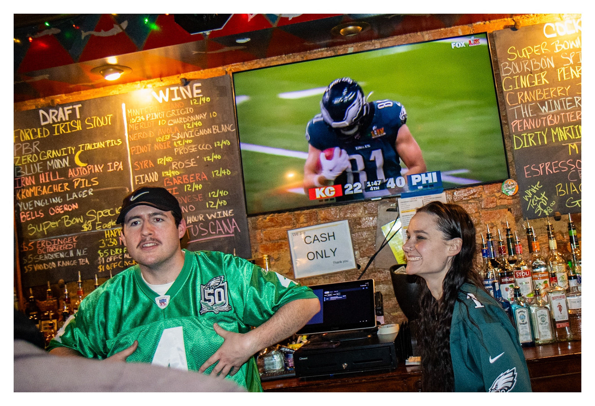 Eagles beat the Kansas City Chiefs in the Super Bowl, 40-22